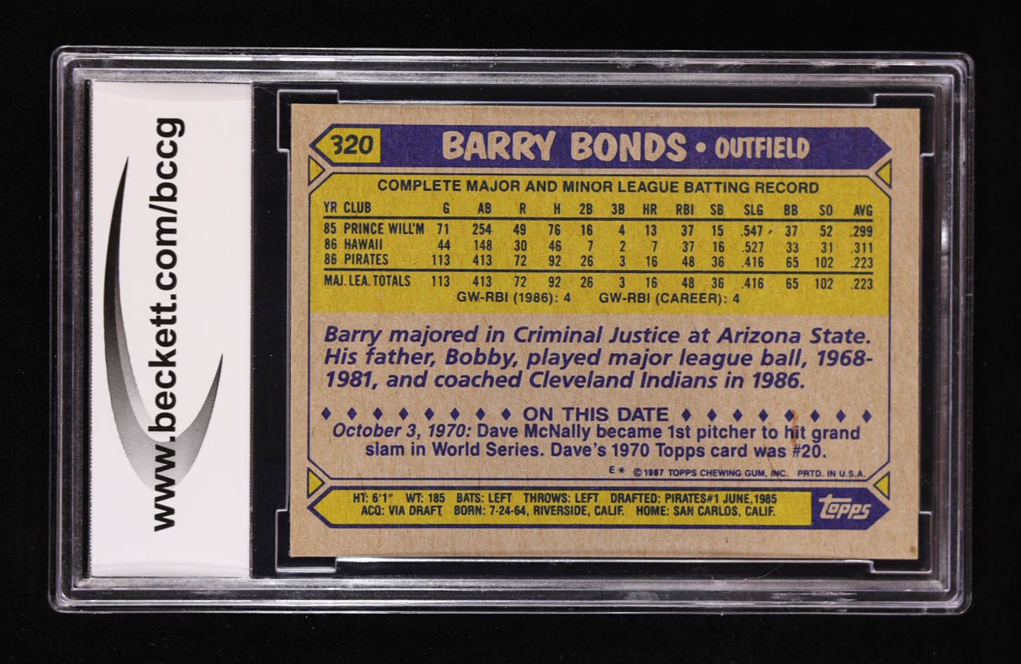 Barry Bonds 1987 Topps #320 RC (BCCG 9)