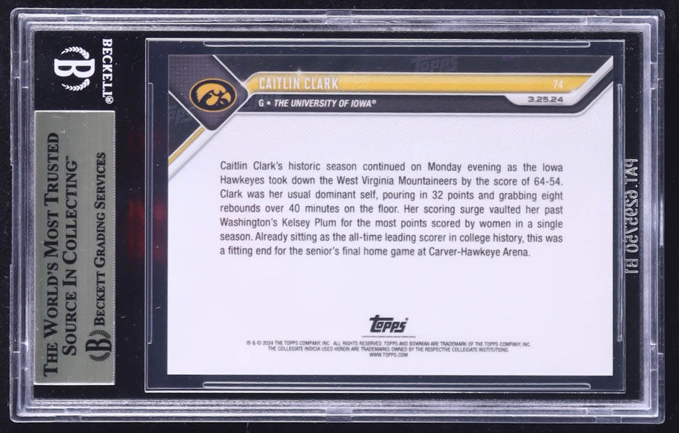 Caitlin Clark 2023-24 Bowman University Now #74 RC (BGS 10)