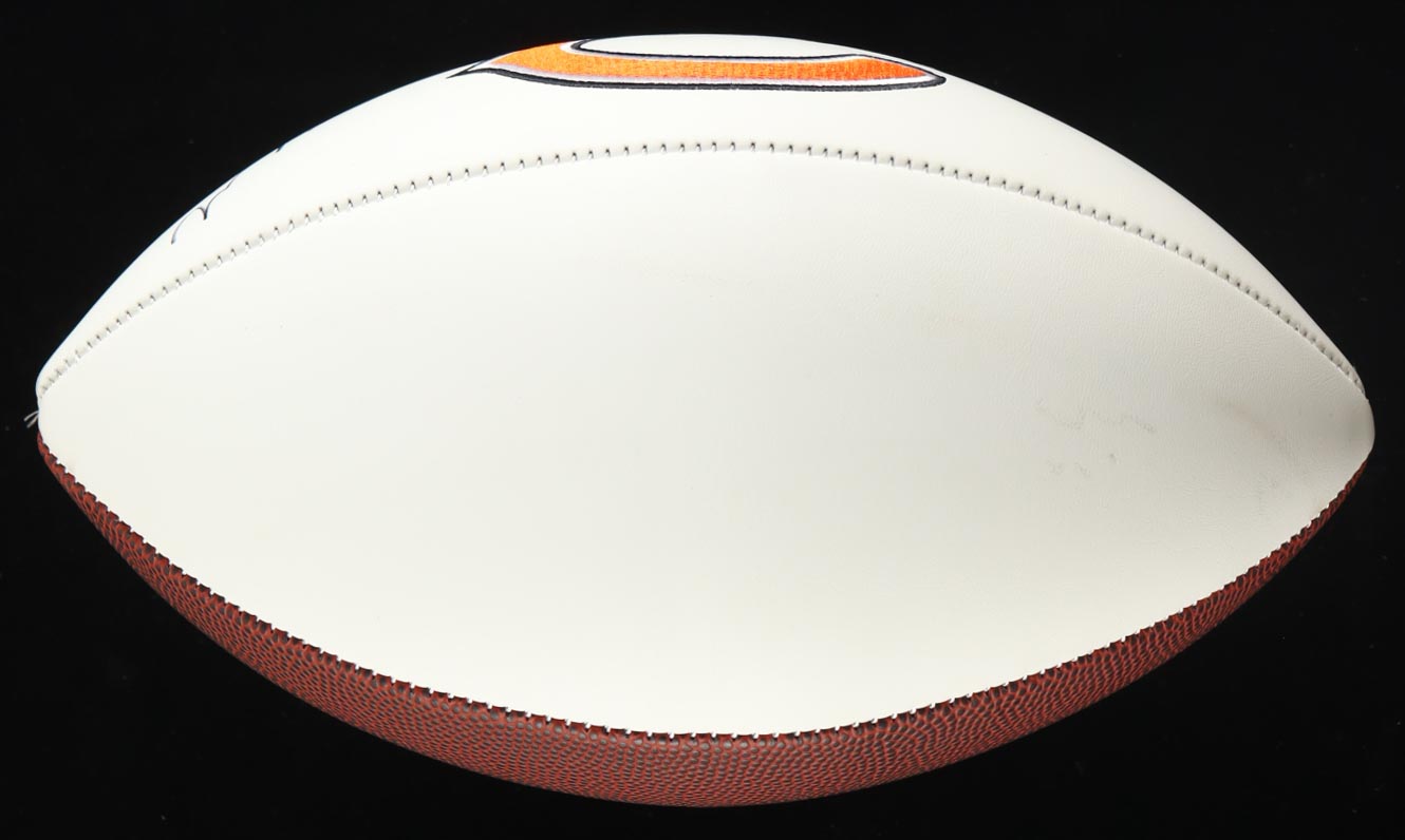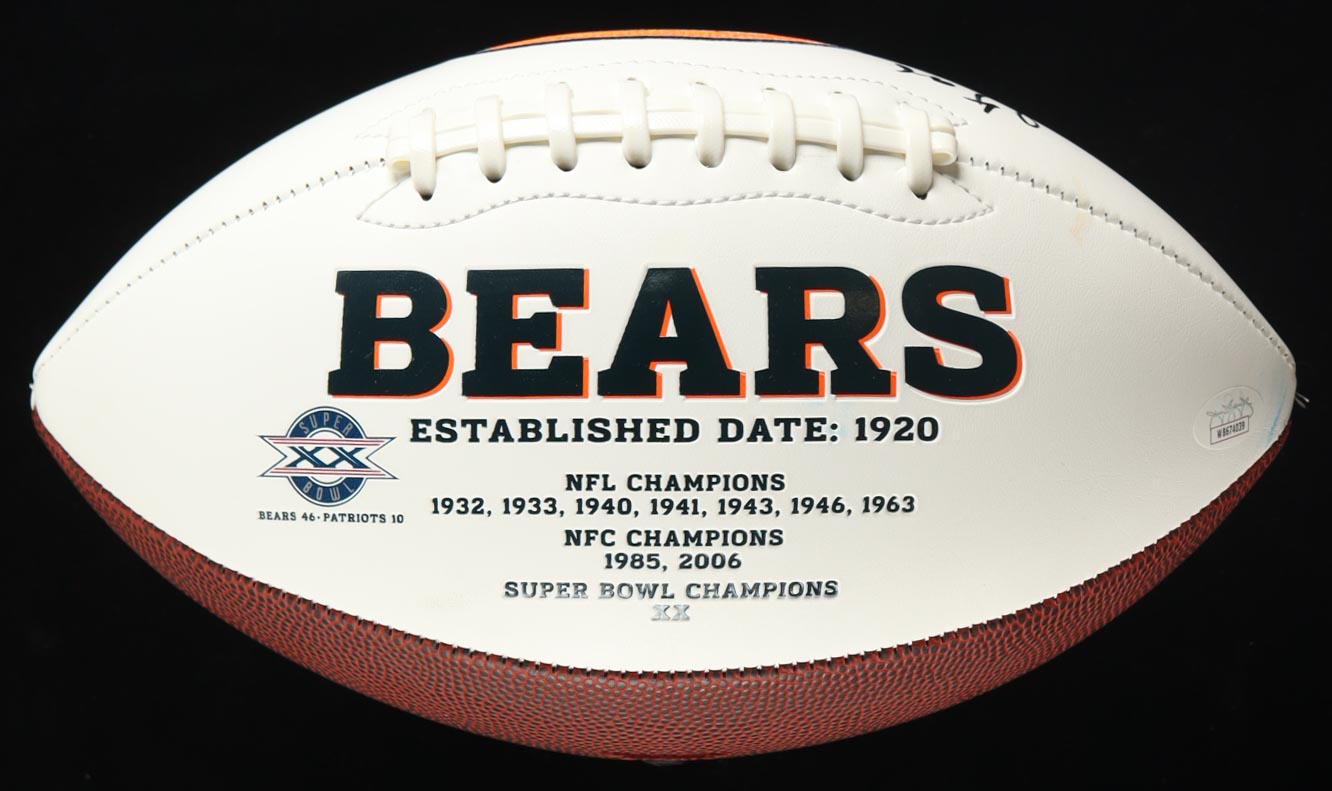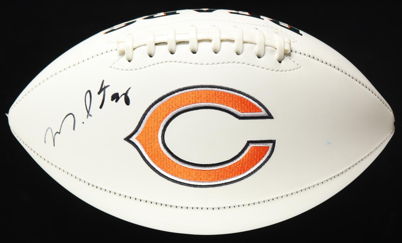 Chicago Bears White Panel Logo Football has been hand-signed by Montez Sweat. Please note, there are markings around the football.