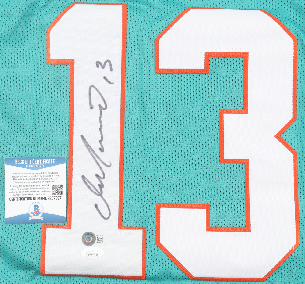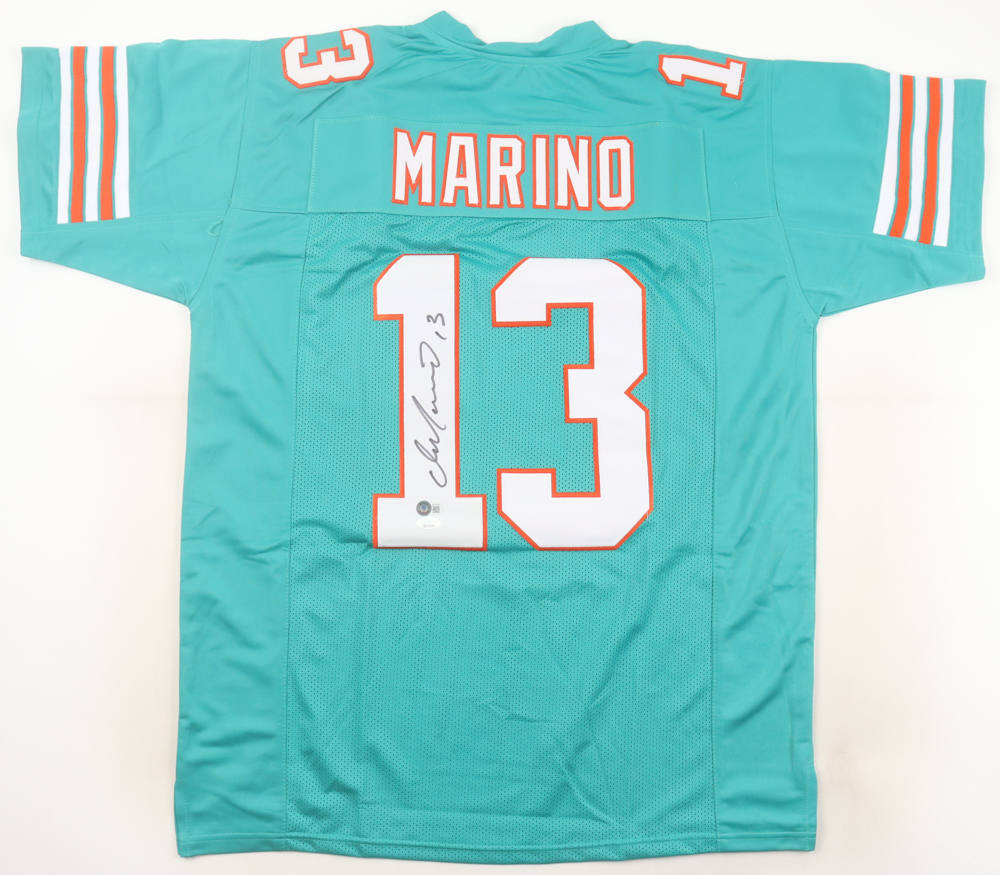 Custom jersey with everything sewn on, size XL. Hand-signed by Dan Marino (HOF).