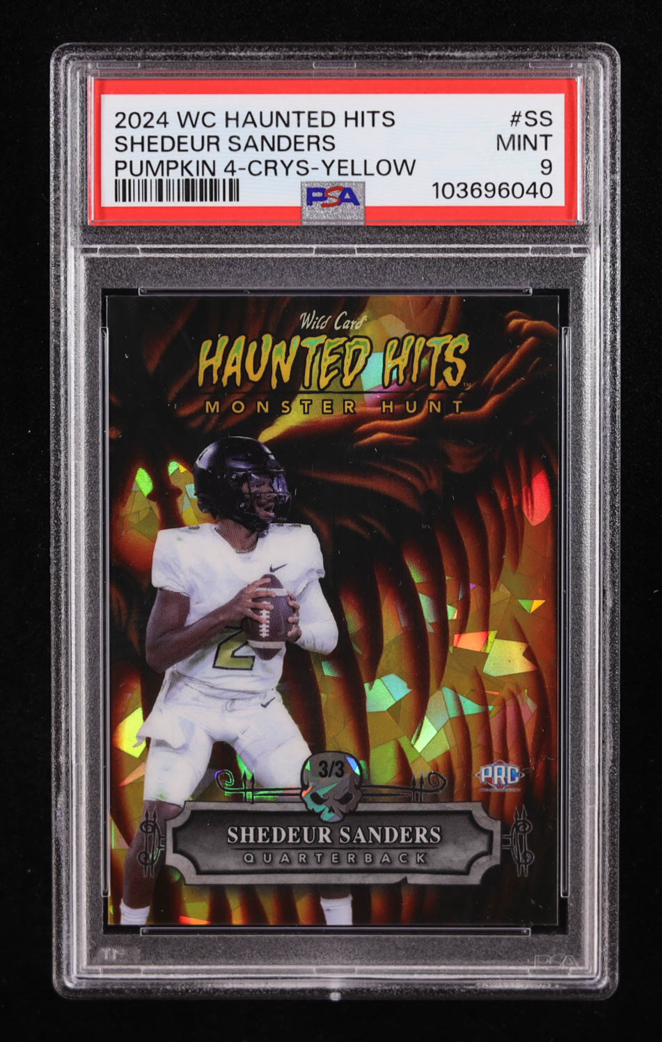 Shedeur Sanders 2024 Wild Card Haunted Hits Pumpkin Crystal Yellow #HHP-SS #3/3 (PSA 9)