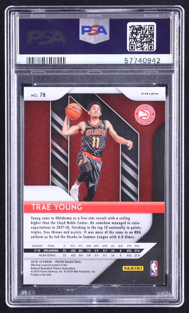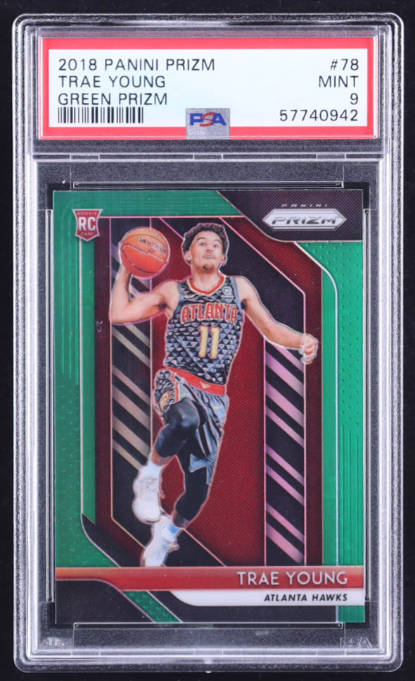 Trae Young 2018-19 Panini Prizm Prizms Green #78 RC (PSA 9)