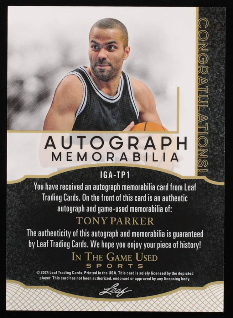 Tony Parker 2024 Leaf ITG Used Autograph Memorabilia Green #IGATP1 #3/3
