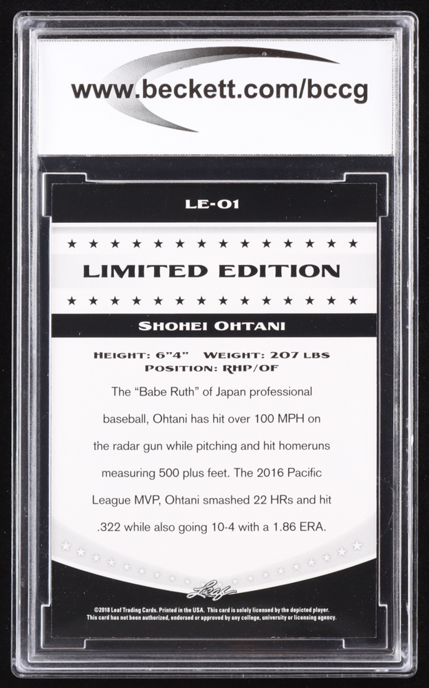 Shohei Ohtani 2018 Leaf Ohtani Limited Edition #LE01 RC (BCCG 10)