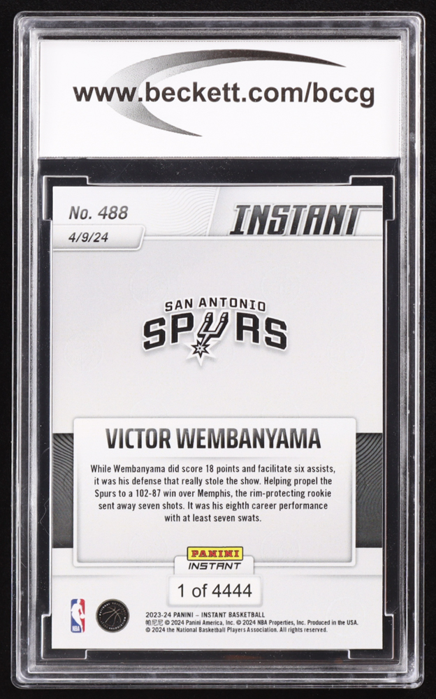 Victor Wembanyama 2023-24 Panini Instant #488 RC (BCCG 10)