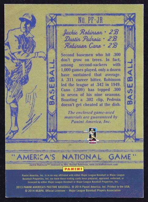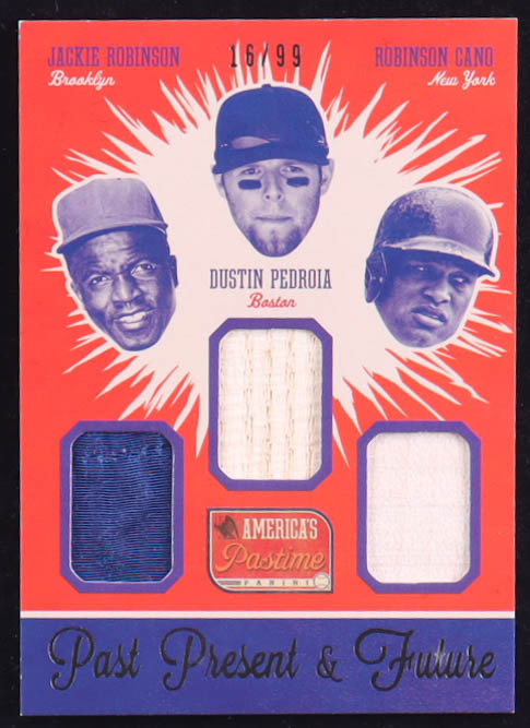Jackie Robinson / Robinson Cano / Dustin Pedroia 2013 Panini America's Pastime Past Present and Future #7 #16/99