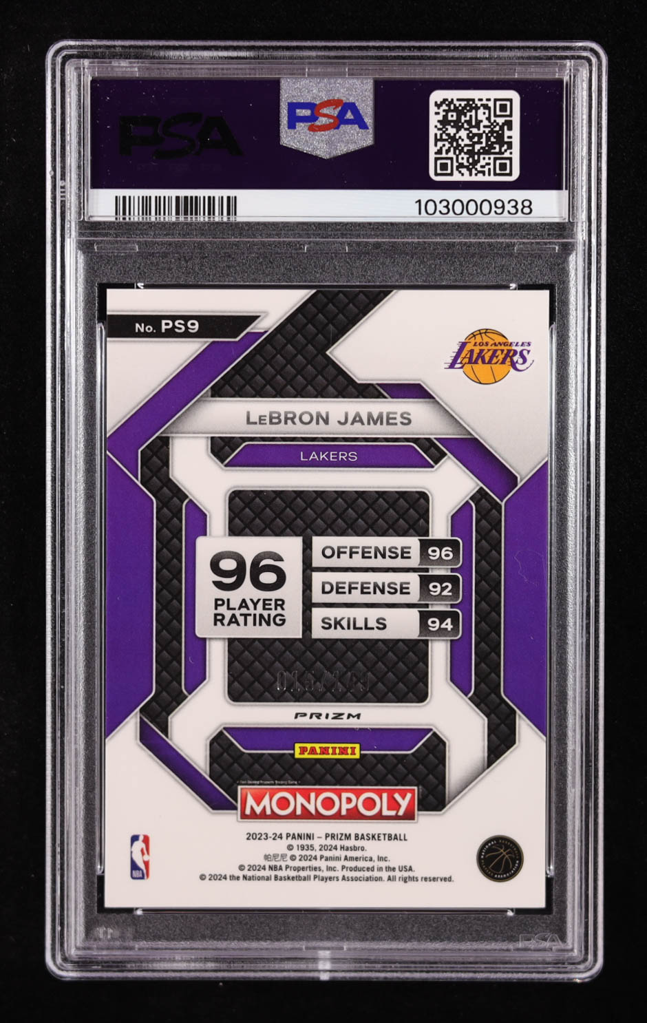 LeBron James 2023-24 Panini Prizm Monopoly All-Star Pink #PS9 #015/149 (PSA 10)