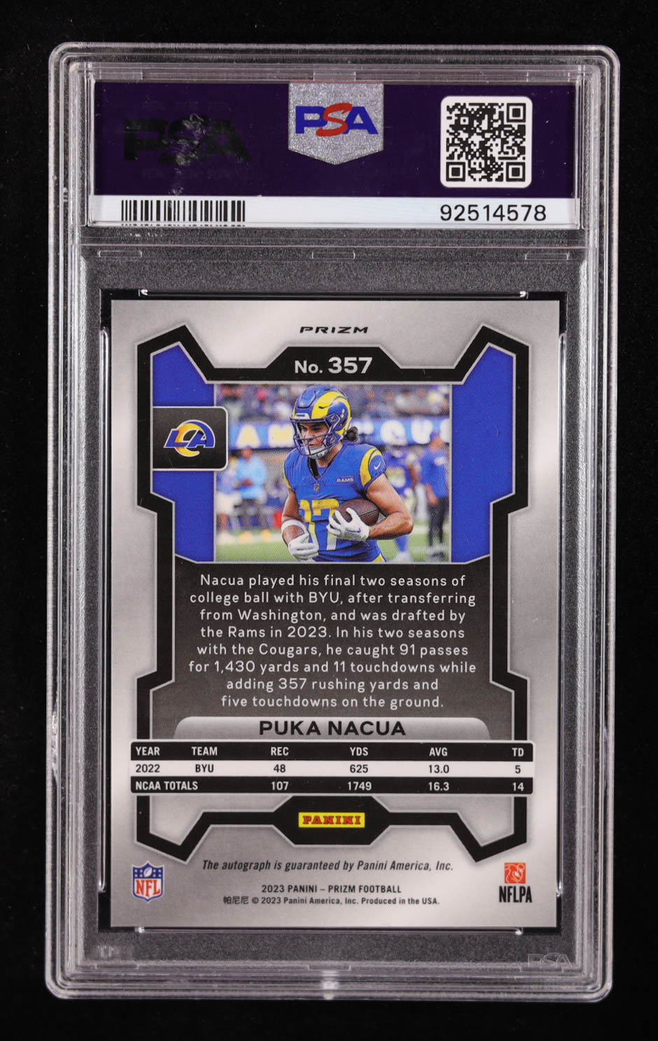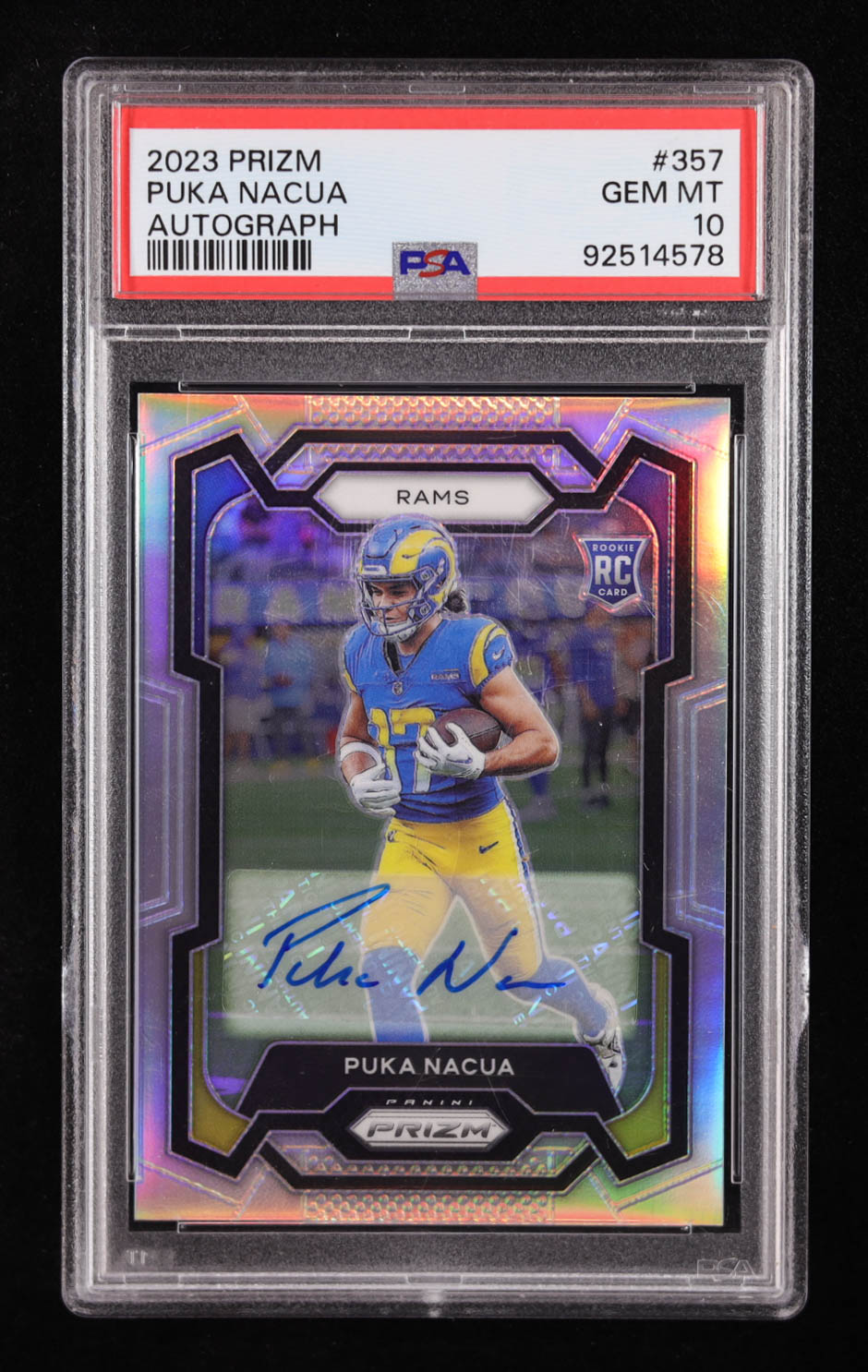 Puka Nacua 2023 Panini Prizm Autographs Prizms Silver #357 RC (PSA 10)