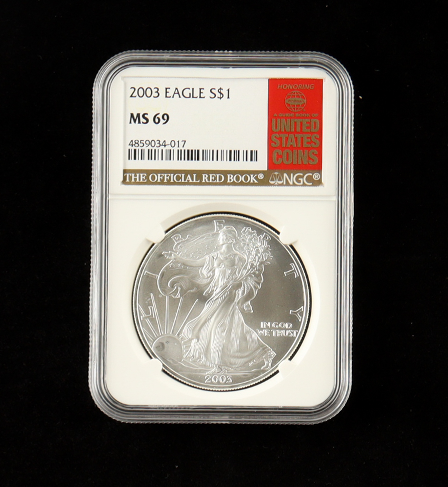2003 American Silver Eagle - The Official Red Book Label (NGC MS69)