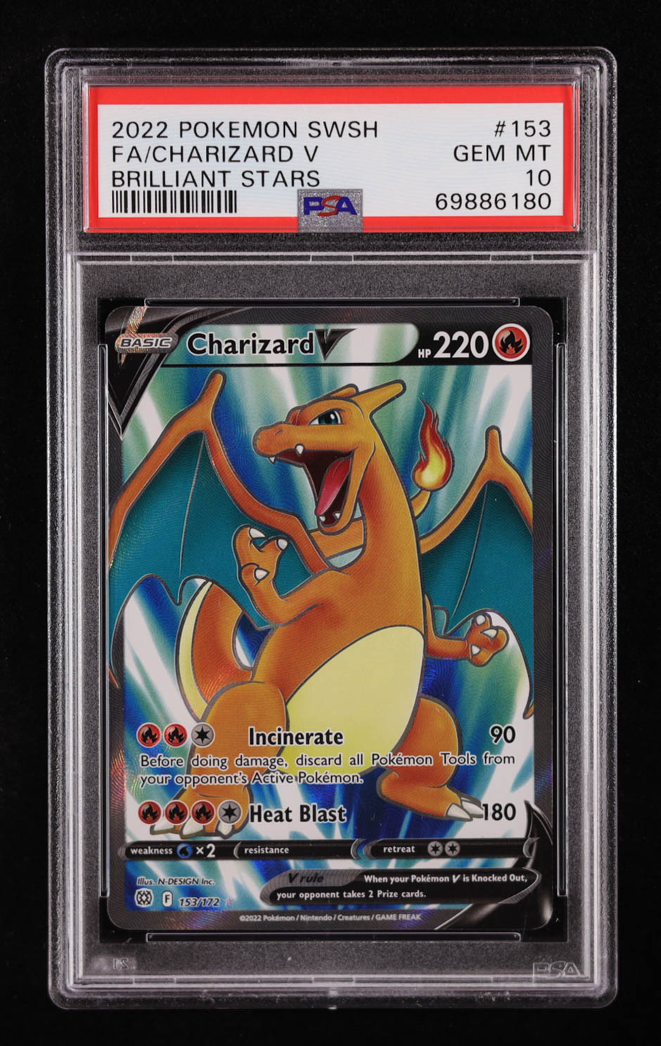 Charizard V 2022 Pokemon Sword and Shield Brilliant Stars #153 (PSA 10)
