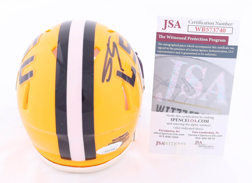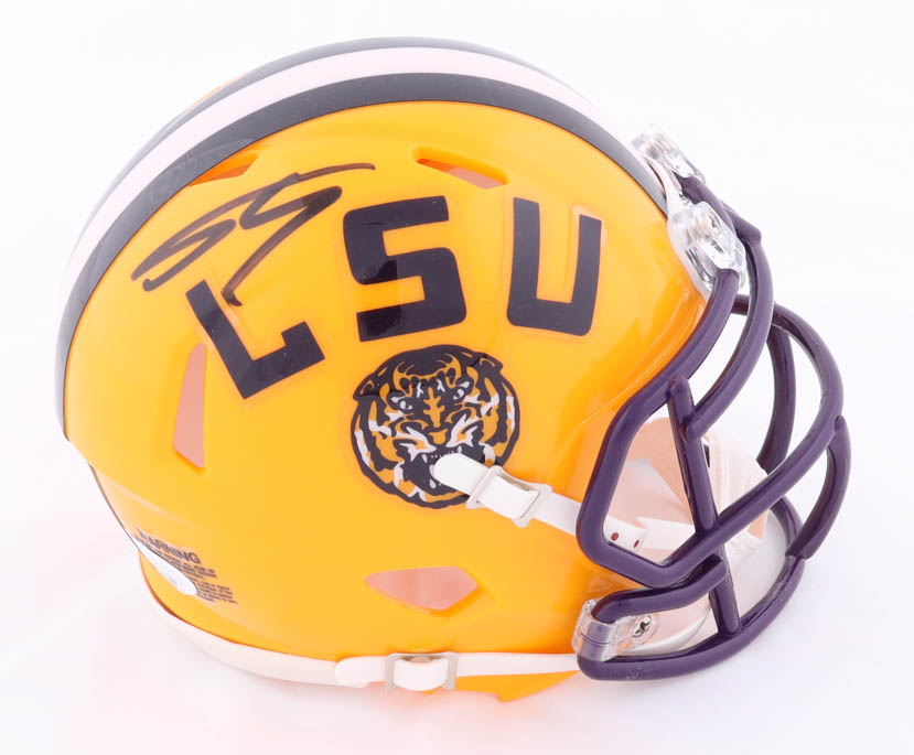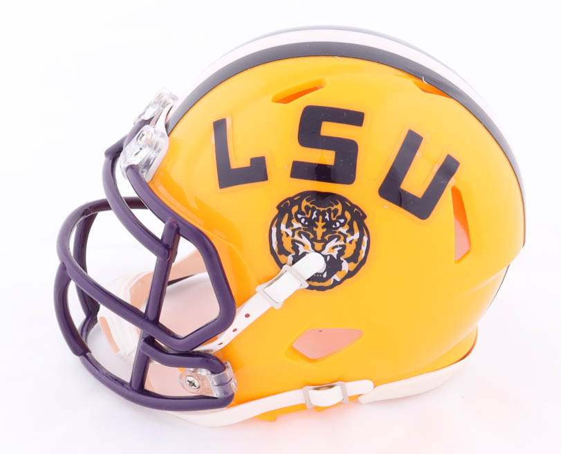 Riddell Louisiana State Tigers Speed mini helmet. Hand-signed by Shaquille O'Neal (HOF).