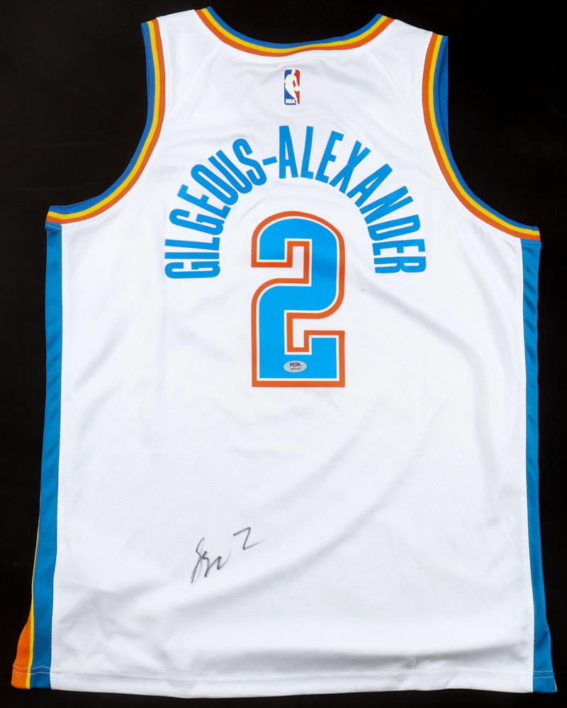 Nike Swingman Authentic Jersey with everything pressed on, size 48. Hand-signed by Shai Gilgeous-Alexander (Oklahoma City Thunder).