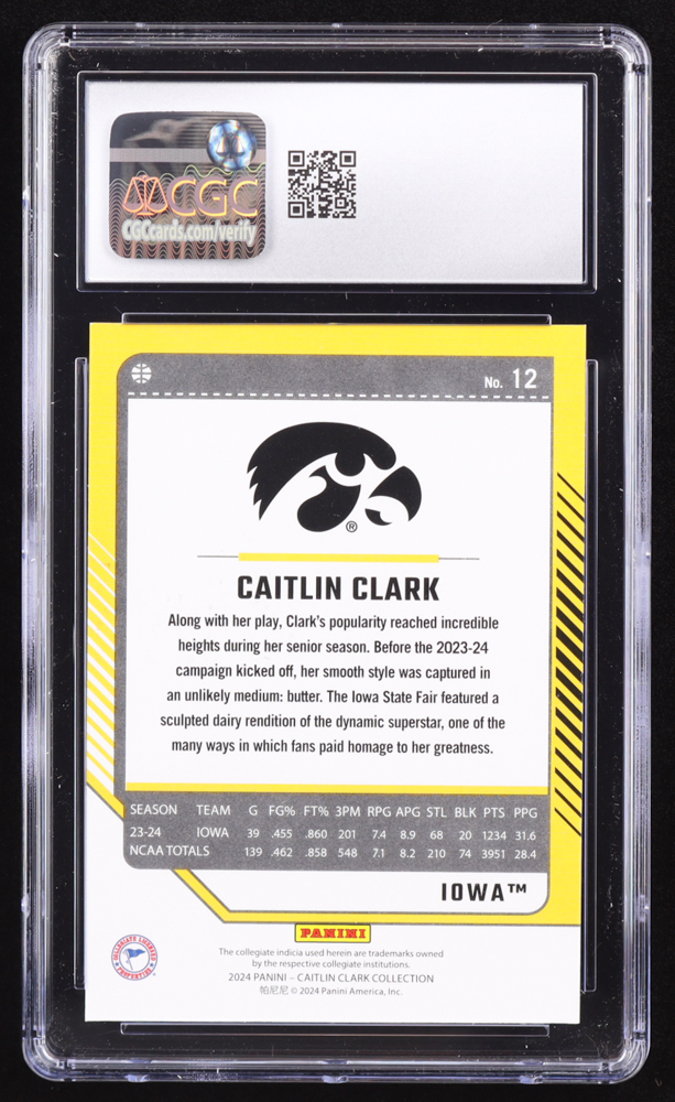 Caitlin Clark 2024 Panini Caitlin Clark Collection Donruss #12 RC (CGC 10)