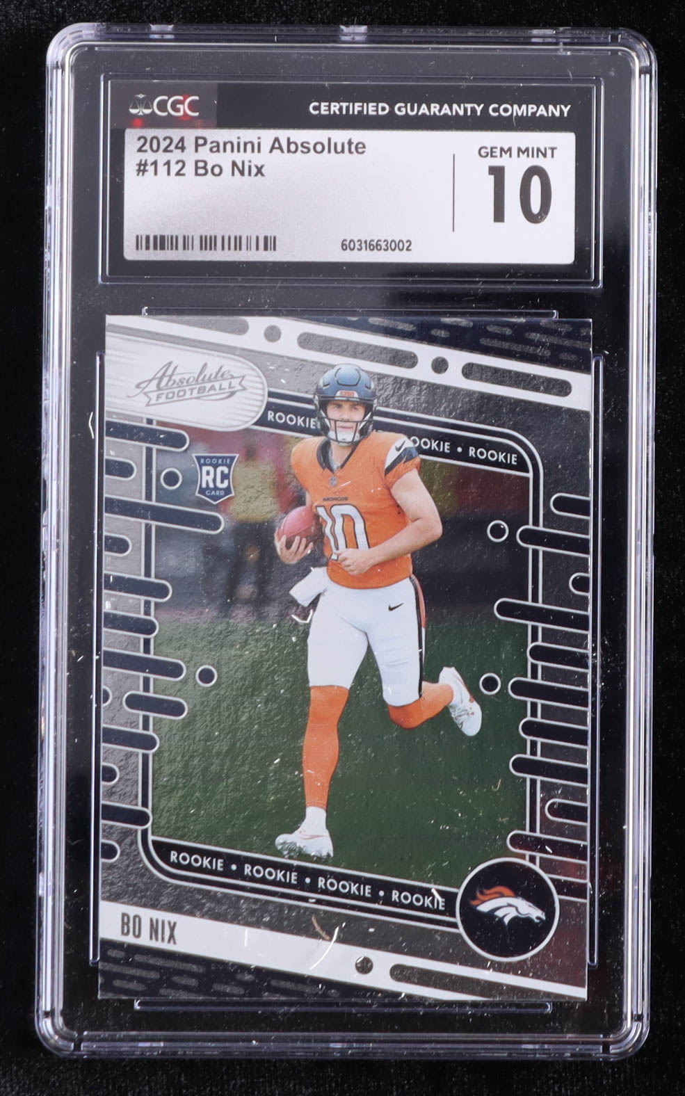Card has been graded CGC 10. Please see photos for details regarding the condition of the card (Denver Broncos).