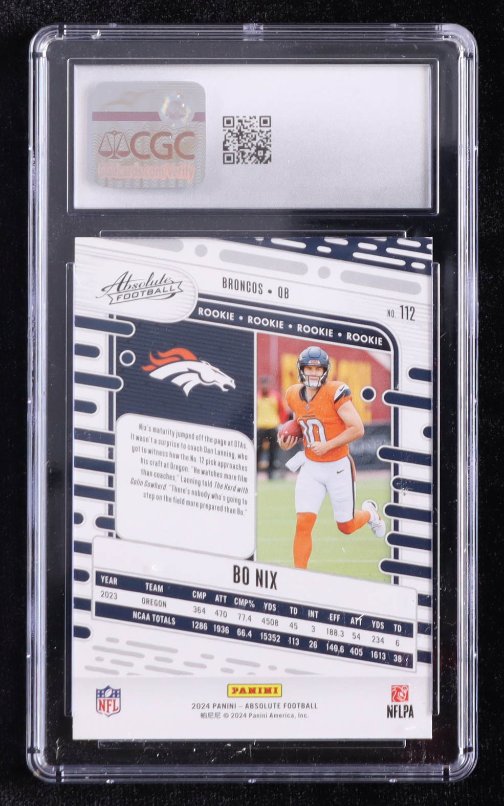 Bo Nix 2024 Absolute #112 RC (CGC 10)