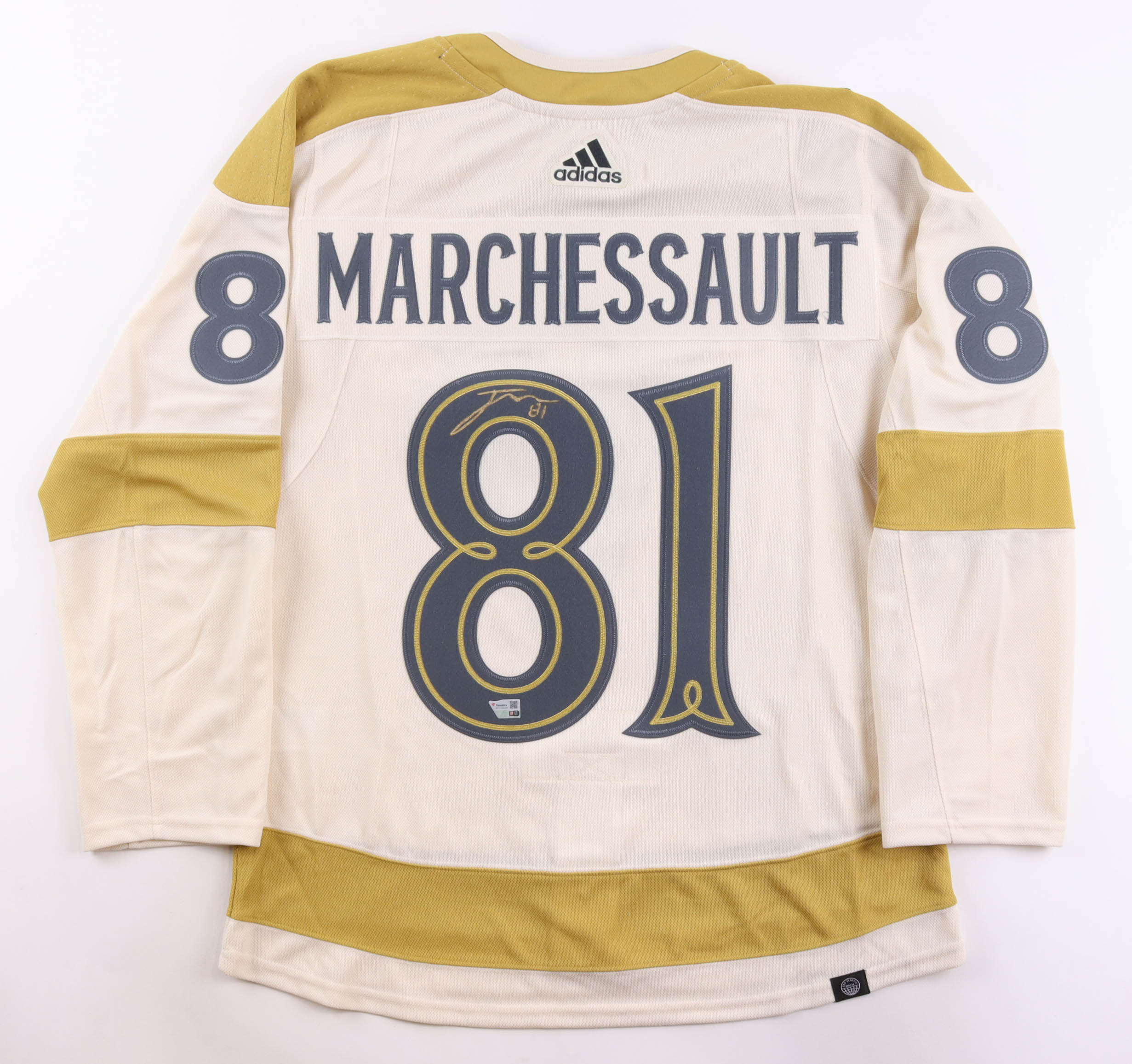Adidas jersey with everything sewn & pressed on, size 46. Hand-signed by Jonathan Marchessault (Vegas Golden Knights).