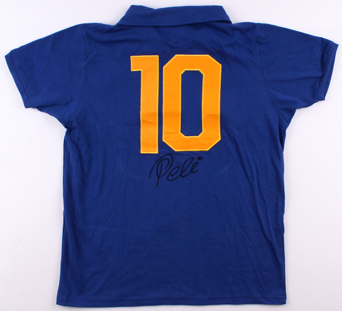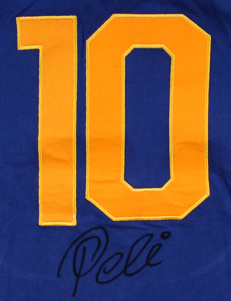 Brazil 1958 world cup replica jersey hand-signed in black felt tip pen by Pele. Cup Championship. During his international career, he won three FIFA World Cups: 1958, 1962 and 1970, being the only player ever to do so.