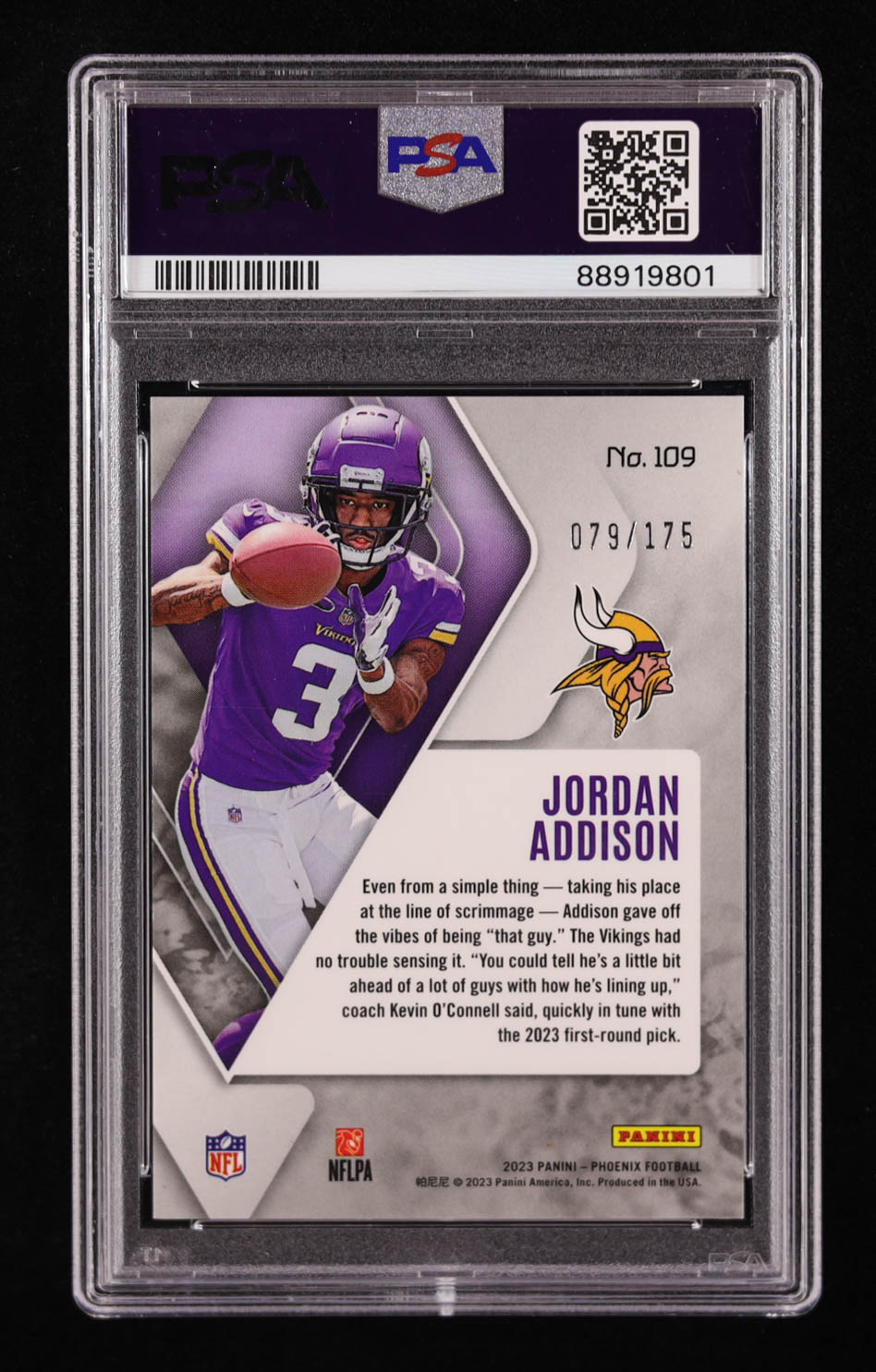 Jordan Addison 2023 Panini Phoenix Lava #109 #79/175 RC (PSA 10)
