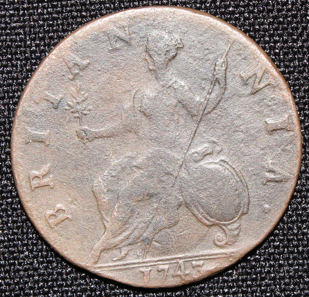 1743 GEORGIVS II REX. (King George the Second) Colonial Half-Penny. Please see photos for details.