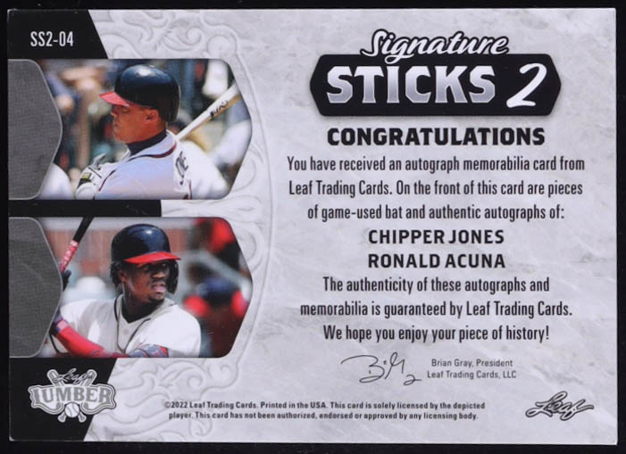 Chipper Jones/Ronald Acuna 2022 Leaf Lumber Signature Sticks 2 Silver #SS204 #2/2