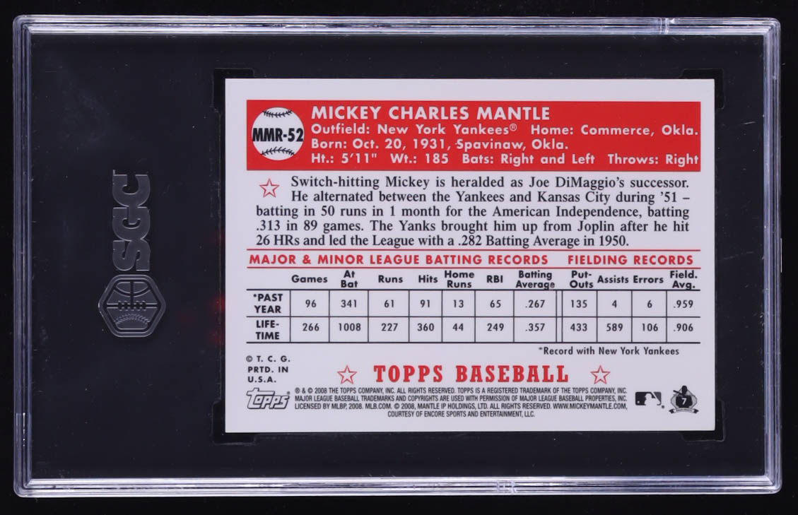 Mickey Mantle 2008 Topps Factory Set Mickey Mantle Blue #MMR52 52T (SGC 9)