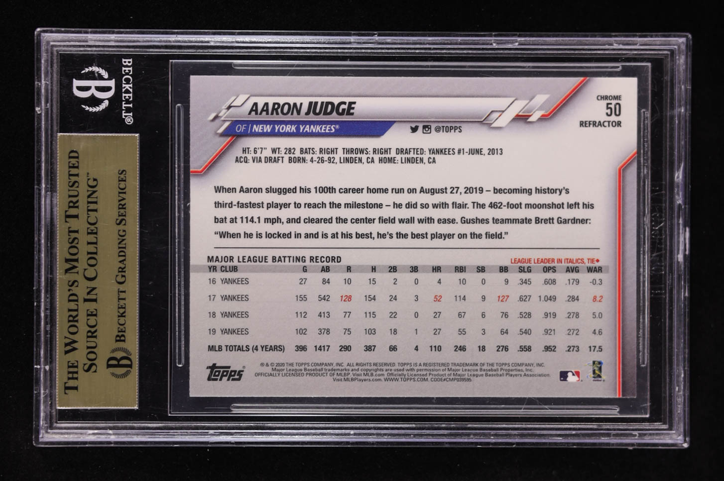 Aaron Judge 2020 Topps Chrome Sepia Refractors #50 (BGS 9.5)