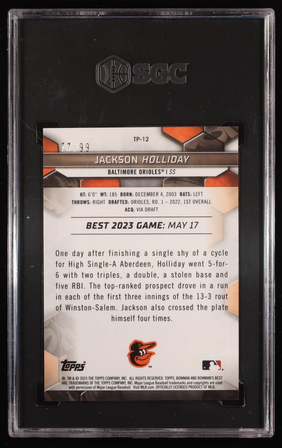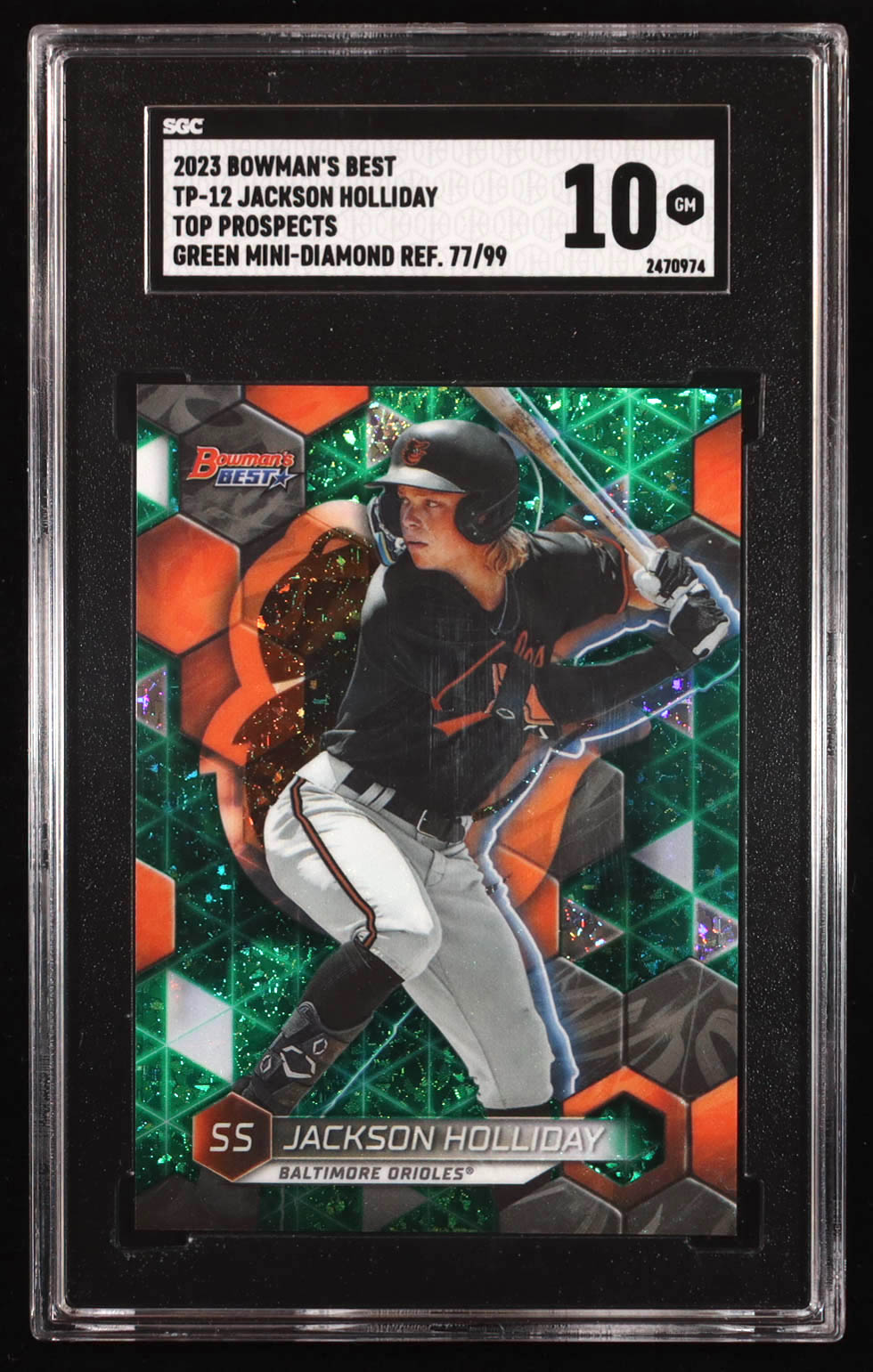 Jackson Holliday 2023 Bowman's Best Top Prospects Green Mini Diamond Refractors #TP12 #77/99 RC (SGC 10)