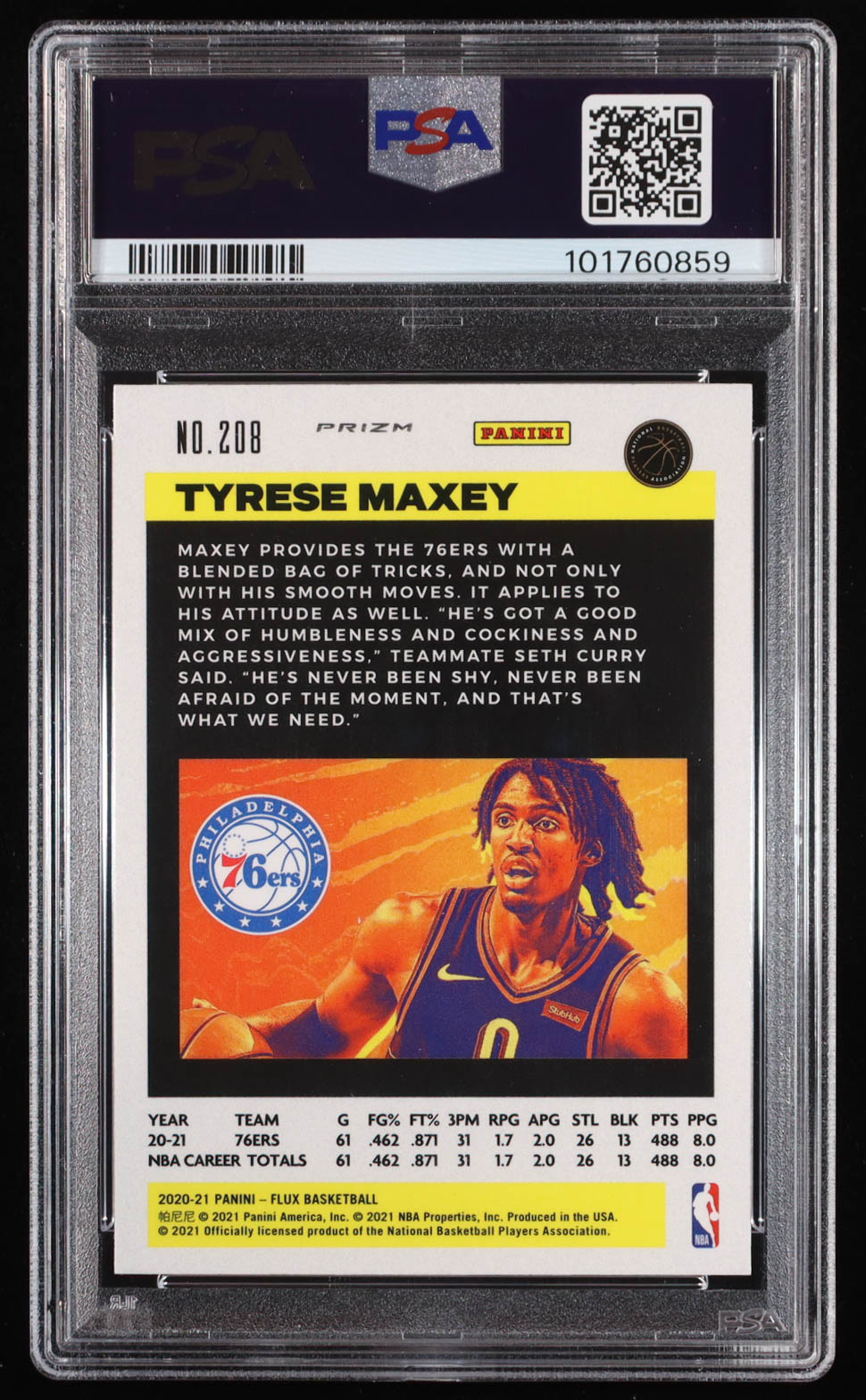 Tyrese Maxey 2020-21 Panini Flux Factory Pulsar #208 RC (PSA 10)