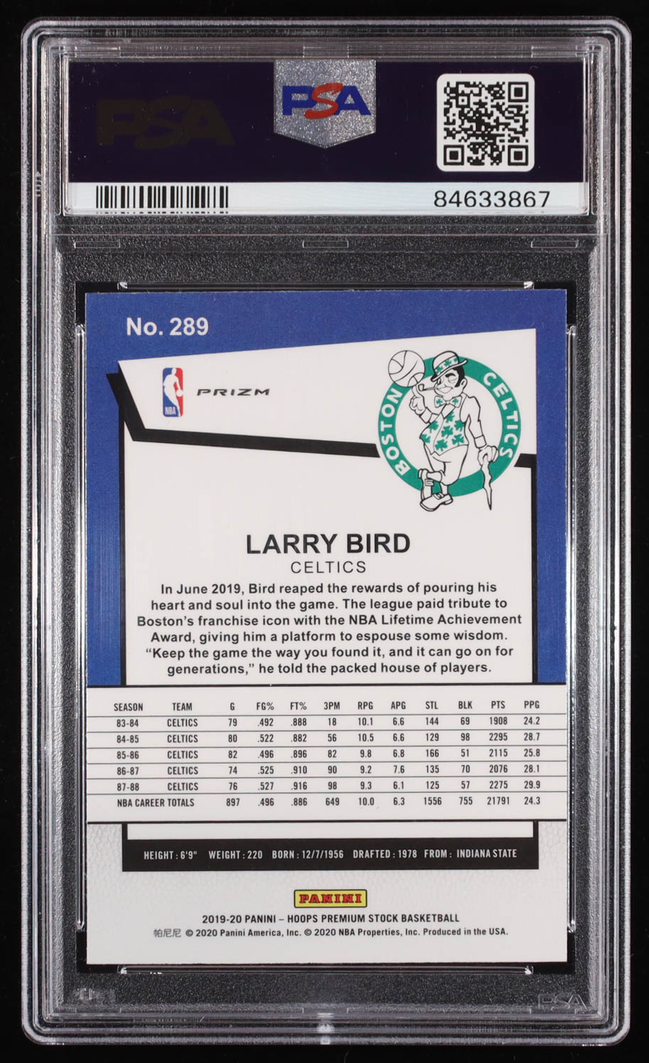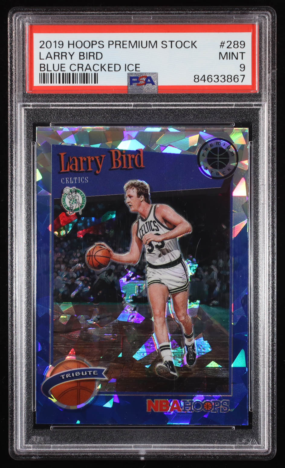 Larry Bird 2019 Hoops Premium Stock Blue Cracked Ice #289 (PSA 10)