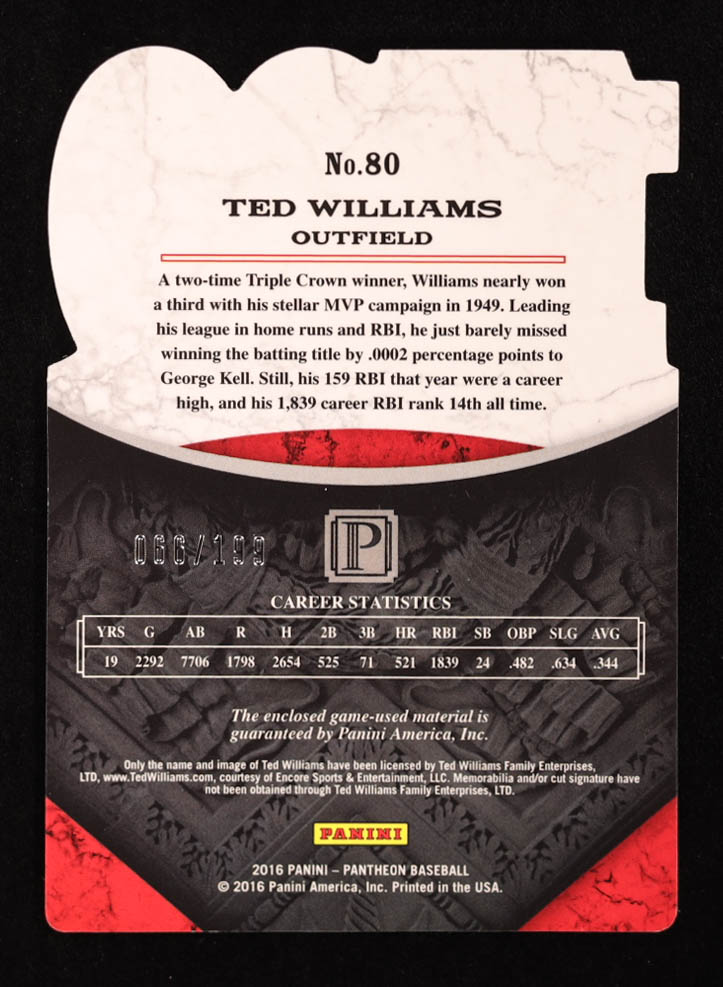 Ted Williams 2016 Panini Pantheon #80 #66/199