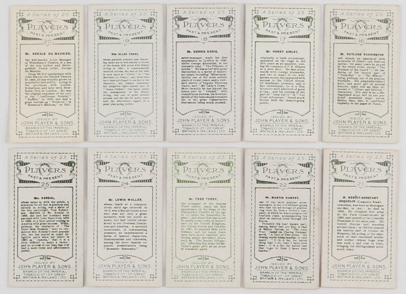 1916 Player's "Past & Present" Complete Set of (25) Theater Stage Actor Cigarette Cards
