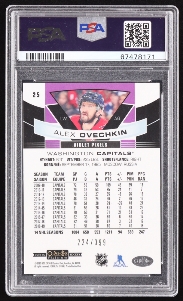 Alexander Ovechkin 2019-20 O-Pee-Chee Platinum Violet Pixels #25 #224/299 (PSA 10)