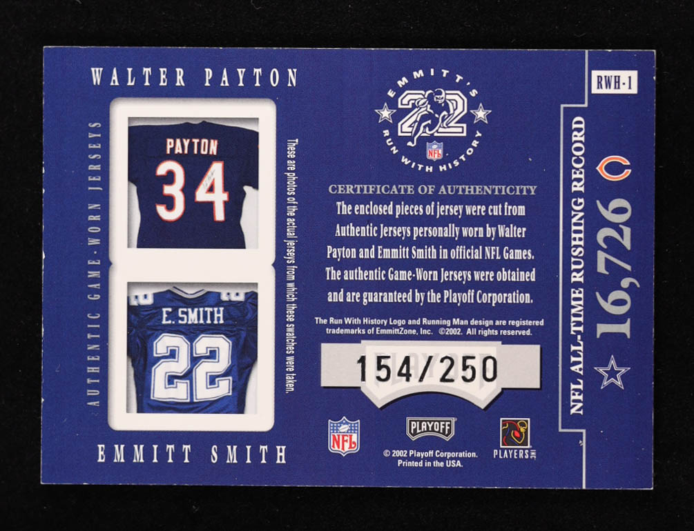 Walter Payton / Emmitt Smith 2002 Playoff Honors #RWH1 Jersey #154/250