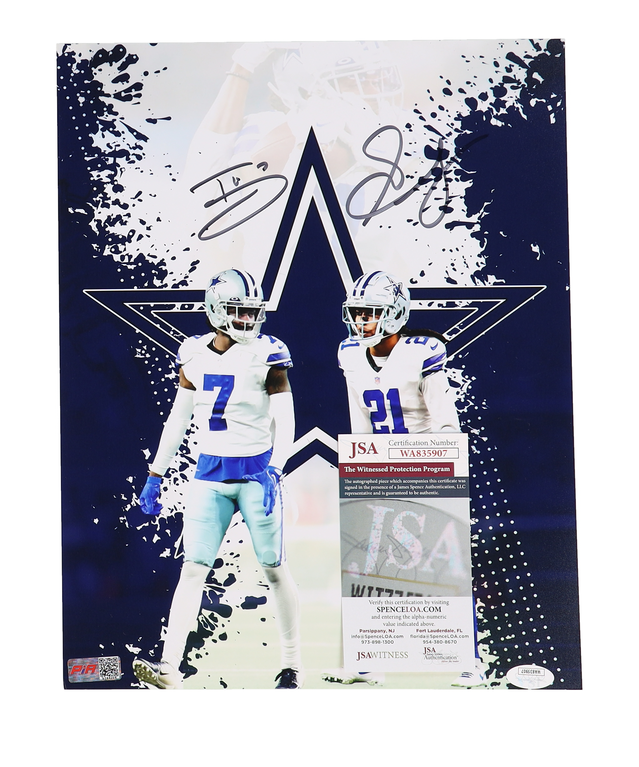 Photo measures 11" x 14" in size and has been hand-signed by Trevon Diggs and Stephon Gilmore (Dallas Cowboys).