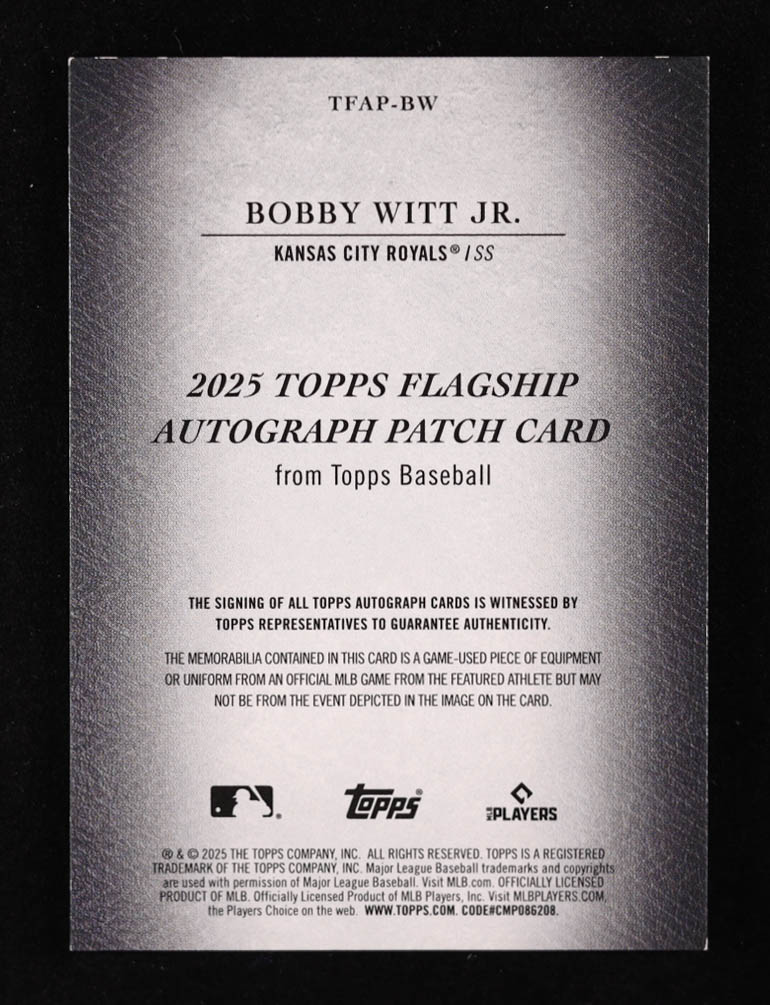 Bobby Witt Jr. 2025 Topps Flagship Autograph Patches Bronze #TFAPBW #23/25