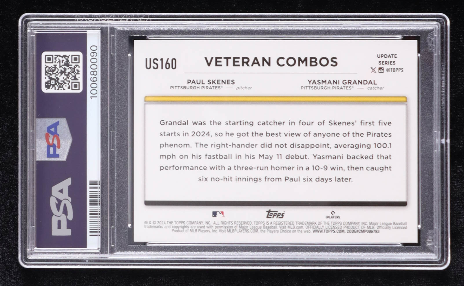 Yasmani Grandal / Paul Skenes 2024 Topps Update Rainbow Foil #US160 RC (PSA 10)