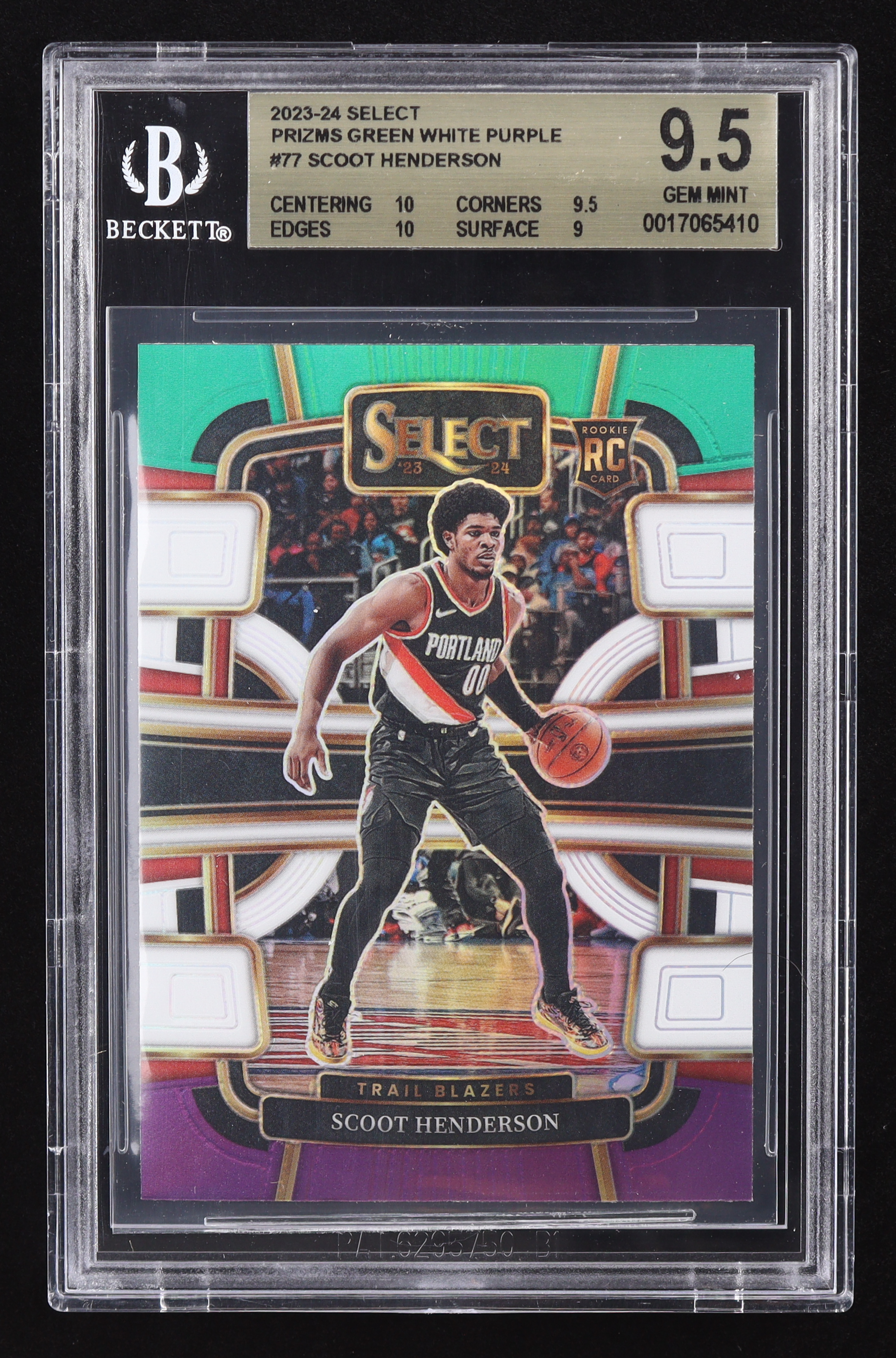 Scoot Henderson 2023-24 Select Prizms Green White Purple #77 RC (Beckett 9.5)
