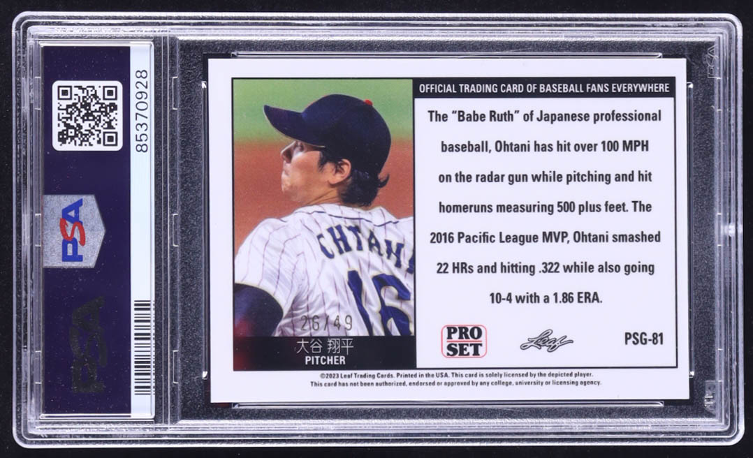 Shohei Ohtani 2023 Leaf Web Exclusives Pro Set Black #PSG81 #26/49 (PSA 9)