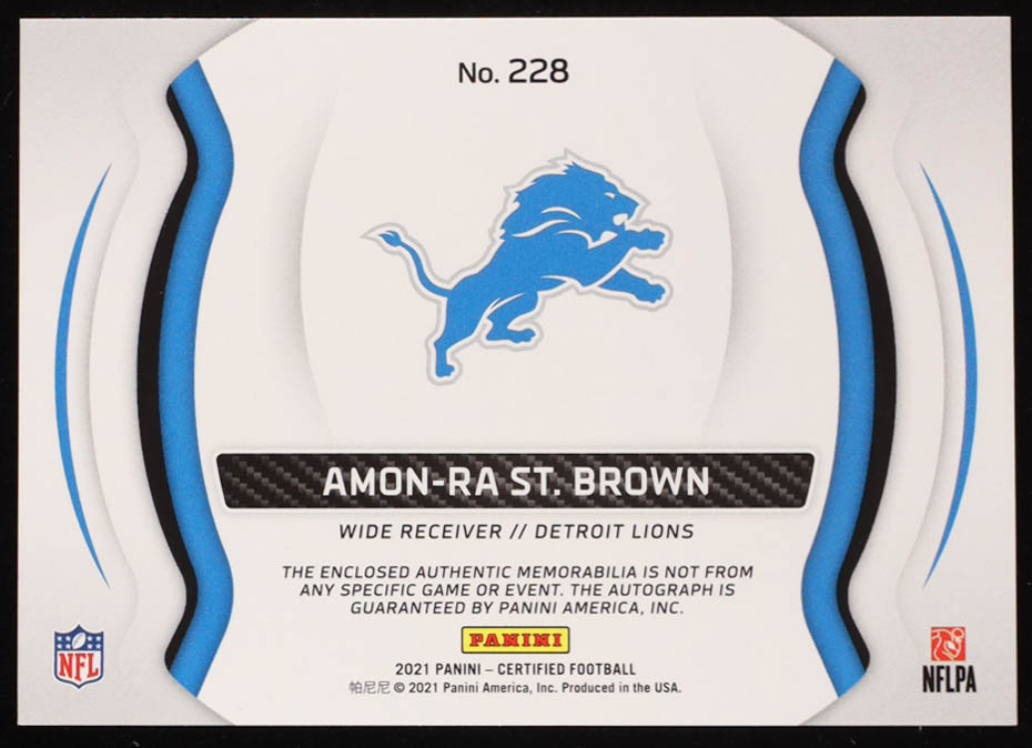 Amon-Ra St. Brown 2021 Certified #228 Jersey Autograph #069/299 RC
