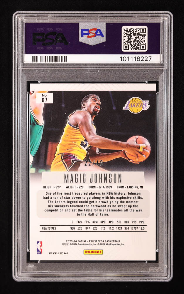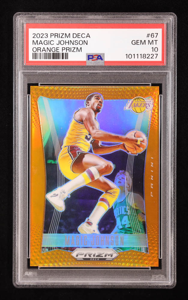 Magic Johnson 2023-24 Panini Prizm Deca Prizms Orange #67 #22/49 (PSA 10)