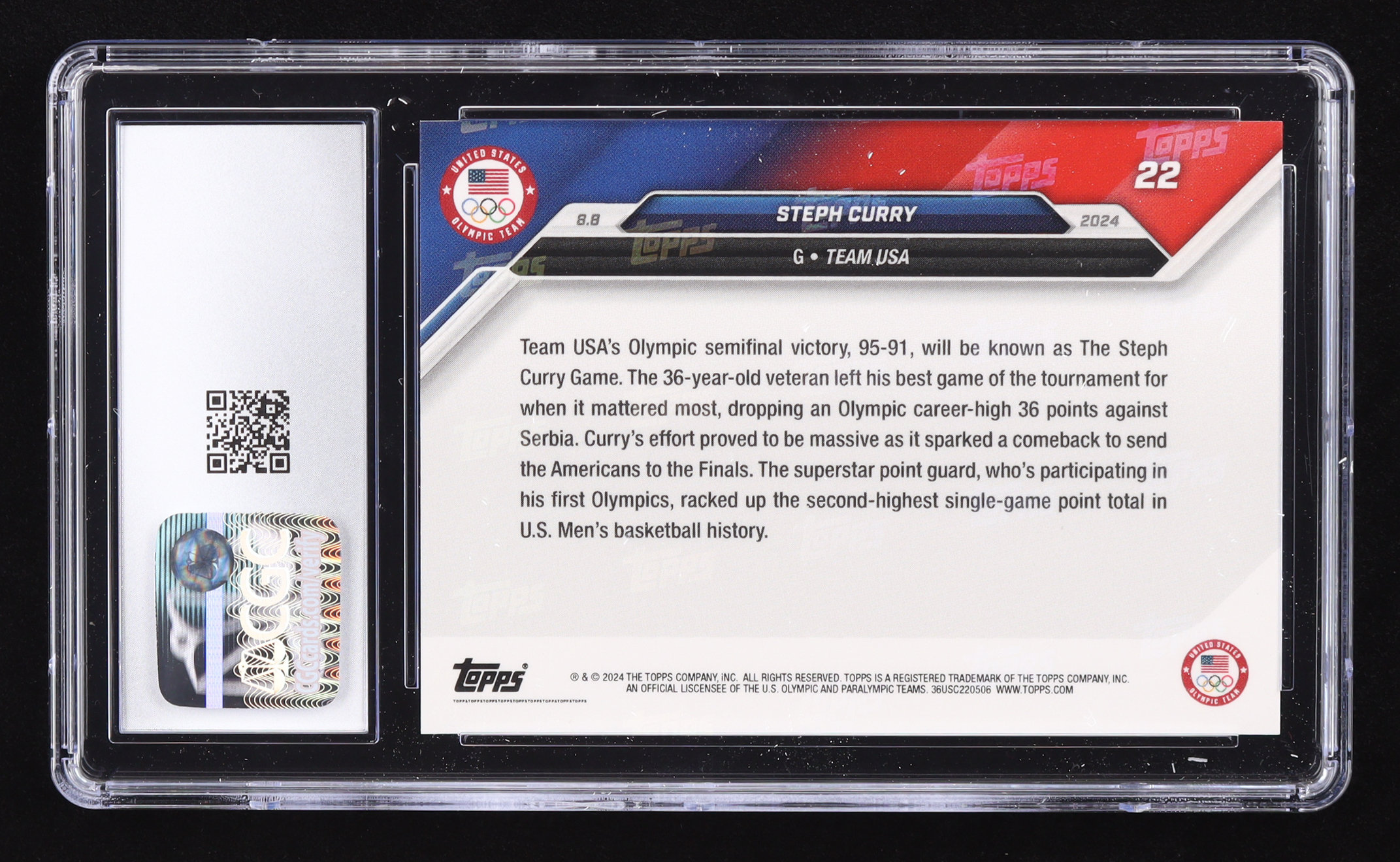 Steph Curry 2024 Topps Now Olympic Games #22 (CGC 10)