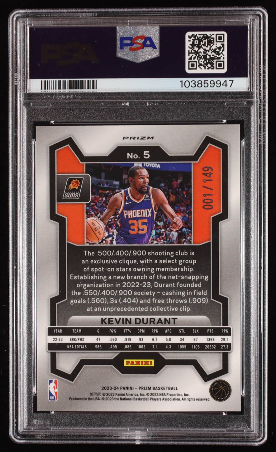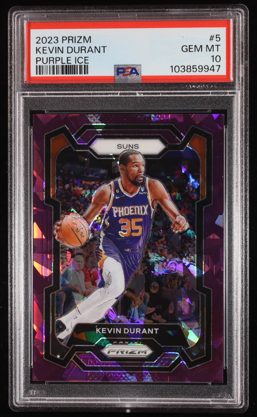 Kevin Durant 2023-24 Panini Prizm Prizms Purple Ice #5 #001/149 (PSA 10)