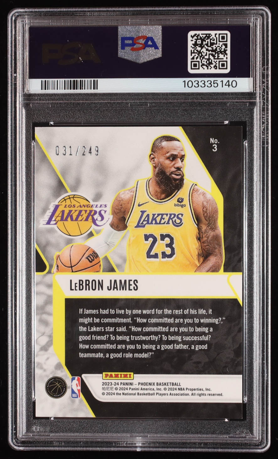LeBron James 2023-24 Panini Phoenix Fade To Black Phoenix Orange Ice #3 #031/249 (PSA 10)