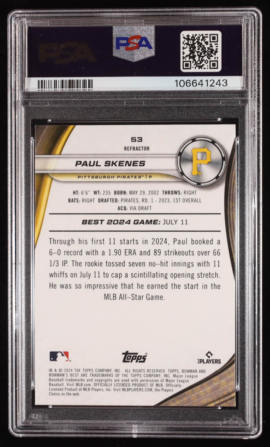 Paul Skenes 2024 Bowman's Best Refractors #53 RC (PSA 10)