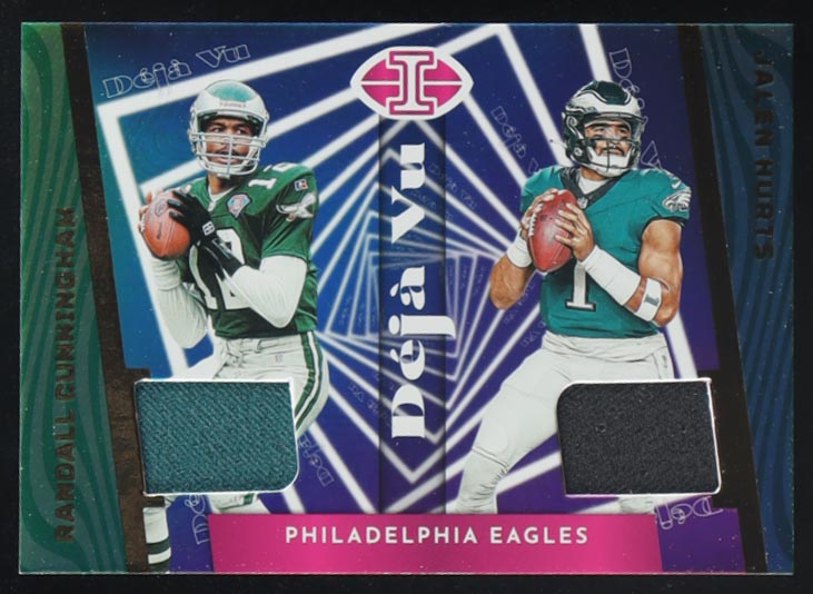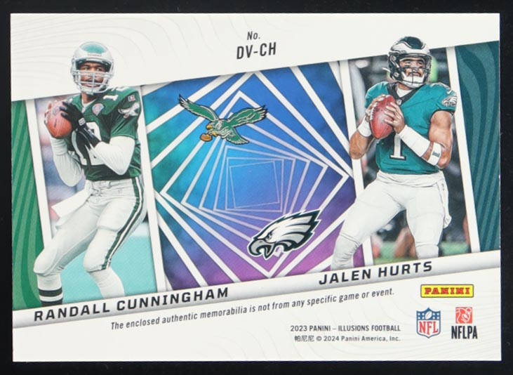 Jalen Hurts / Randall Cunningham 2023 Panini Illusions Deja Vu Materials #14