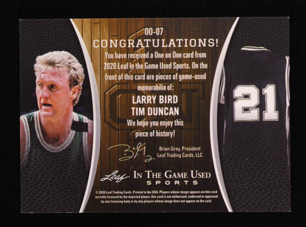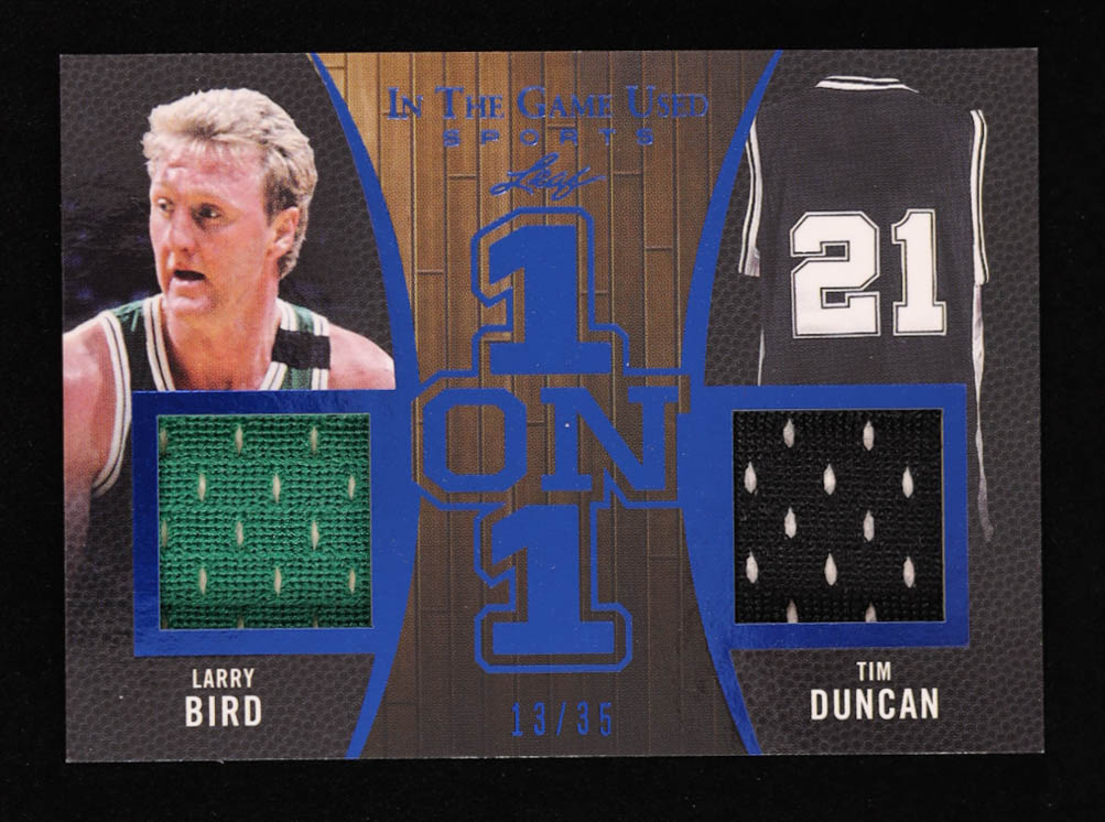 Larry Bird / Tim Duncan 2020 ITG Used Sports One on One Dual Memorabilia Navy Blue #OO07 #13/35