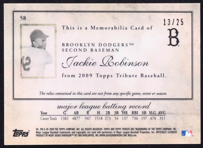Jackie Robinson 2009 Topps Tribute Relics Triple Gold #58 #13/25