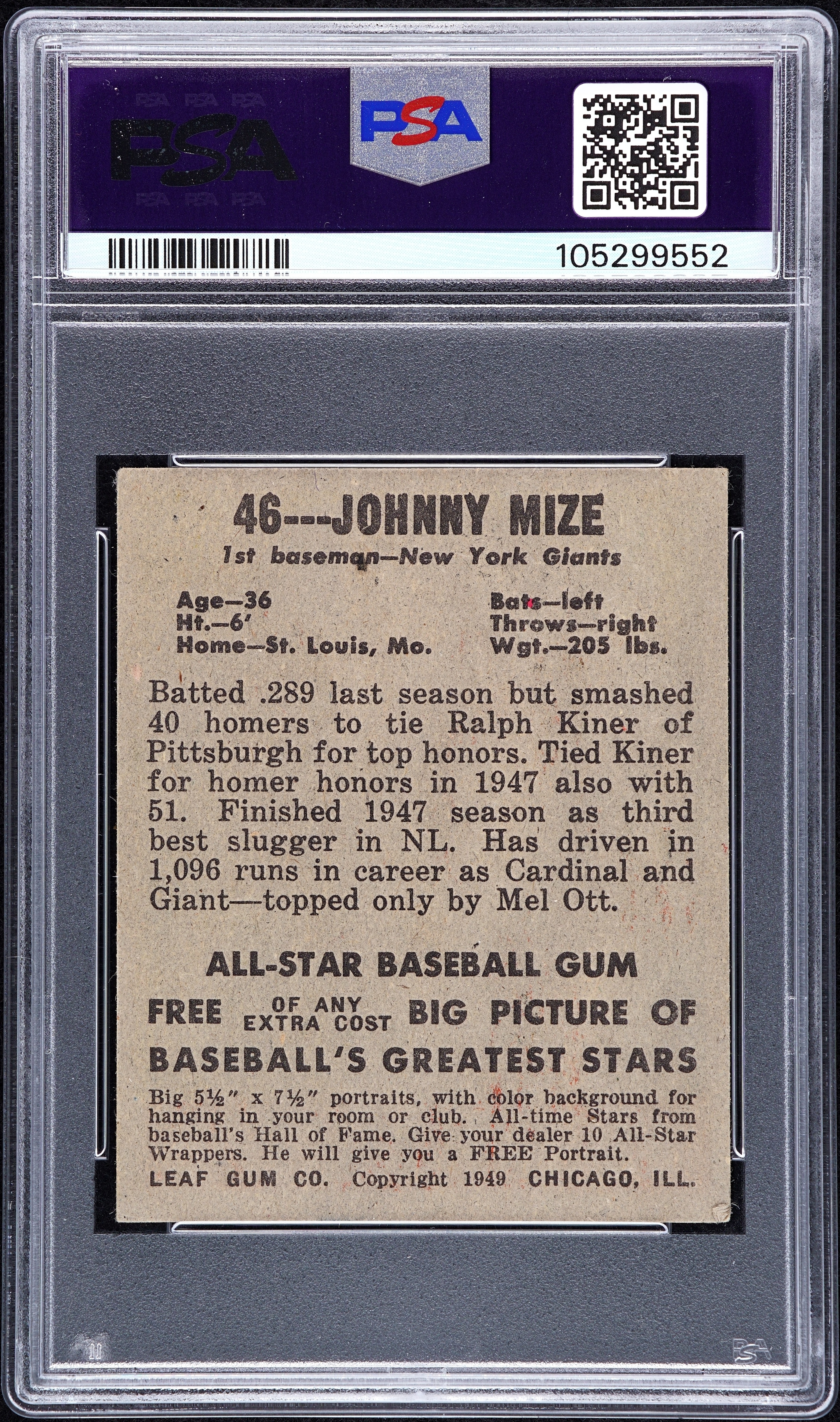 Johnny Mize 1948 Leaf #46 RC (PSA 4)