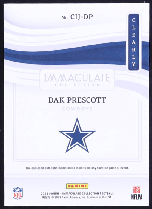 Dak Prescott 2023 Immaculate Collection Clearly Immaculate Jerseys Prime #CIJDP #4/10