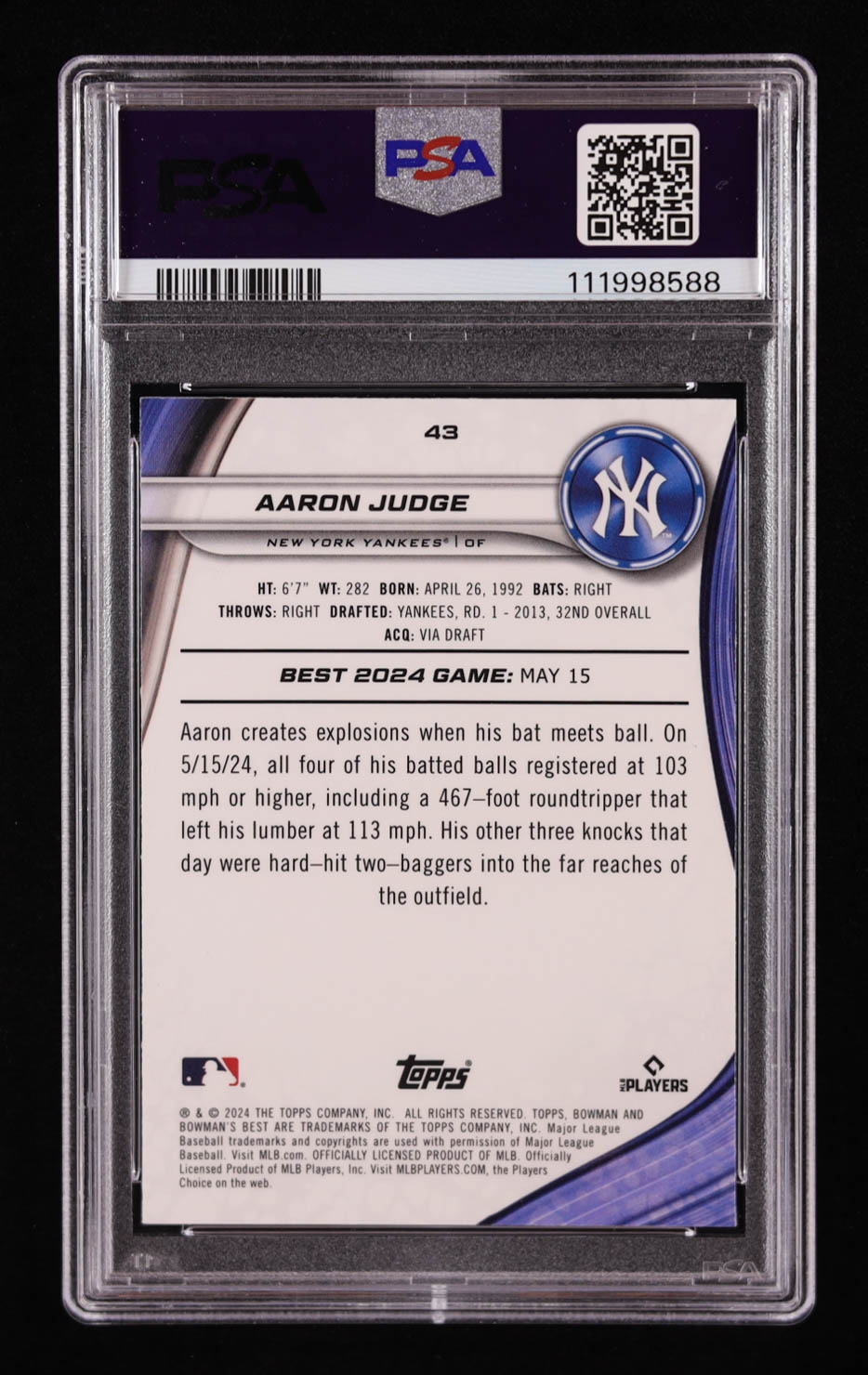 Aaron Judge 2024 Bowman's Best Yellow Lazer #43 (PSA 10)